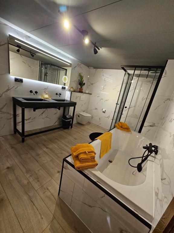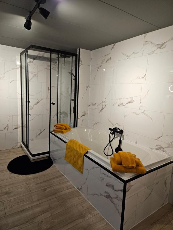 Onze luxe kamer met bad biedt extra comfort en ruimte voor gasten die hun verblijf in de Ardennen net dat beetje specialer willen maken. De kamer is sfeervol en warm ingericht, waardoor je je meteen thuis voelt na een dag in de natuur rond Tailles en Houffalize.